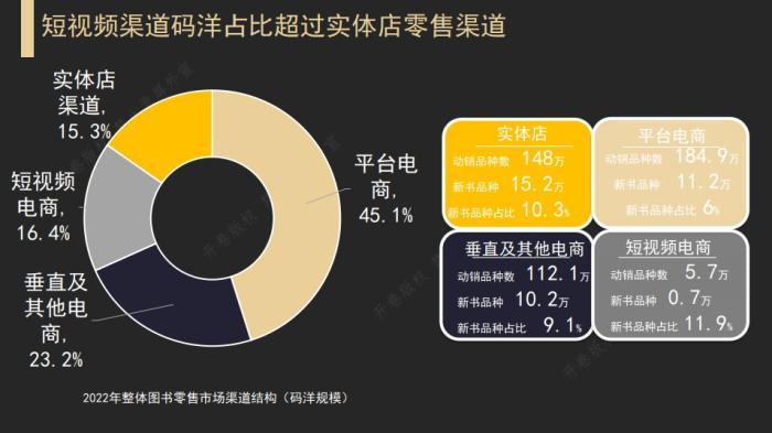 上述報(bào)告提到,短視頻渠道已經(jīng)成為新書重要的宣發(fā)渠道,從整體圖書零售市場前100名非主題出版類新書的銷量分布來看,有43種新書在短視頻電商的銷量占比超過50%。
