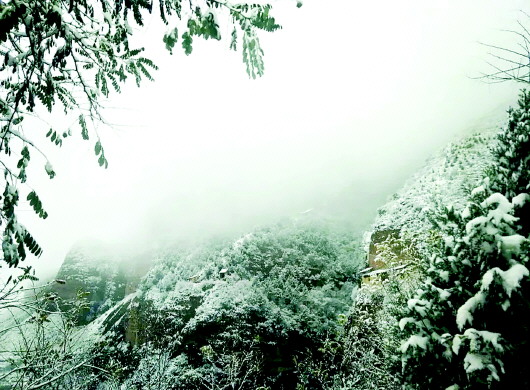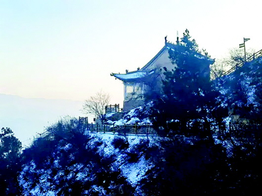 白雪覆蓋著天地間的一切喧囂,此時(shí),朝著山門向上望去,通天梯沒入天際,天與山的交界處一片蒼茫,分不清是云是煙,似乎上面真是仙境,讓人忍不住想要探尋。