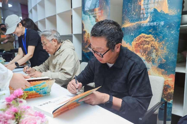 年會上還舉辦了“科幻中的故土情懷”圓桌論壇,由程婧波擔任主持人,董仁威、江波、甘偉康、石以、超俠、顧適、劉玉杰參加對話交流。當晚在首鋼園•全民暢讀藝術(shù)書店舉行新書簽售活動,王晉康、劉慈欣、董仁威、超俠、寶樹、江波、程婧波、顧適等本書8位作者代表全書56位中國科幻重磅作家簽售,現(xiàn)場讀者數(shù)百人參加,快手新知平臺50余萬人在線圍觀,刷新了科幻圖書出版簽售少有的火爆場面。