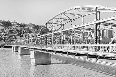 以百年時間看黃河,《黃河中國》彰顯黃河古文明之上崛起的現(xiàn)代文明。在書中我特意寫了三座百年黃河鐵橋,它們分別是蘭州黃河鐵橋、鄭州平漢鐵路黃河橋和濟南濼口黃河鐵路橋。一百年放置在歷史長河里不算長,卻是一個較為合適的觀照近現(xiàn)代中國發(fā)展的時間點。從擺渡、繩渡到石橋、木橋、浮橋、鐵路橋、公路橋,橋梁建筑史的發(fā)展足以證明人類社會的進步。黃河上最初修建鐵橋的歷史在晚清末年,正是中華民族處于內(nèi)憂外患之際,光緒二十六年(1900)清政府決定修建平漢黃河鐵路橋,這是黃河上的第一座鋼鐵建筑,然而在1938年抗戰(zhàn)烽火中,為阻擋日軍進攻,被炸毀了,現(xiàn)在只剩下5孔橋墩。以5孔橋墩存在的黃河第一座鐵橋,象征著黃河上現(xiàn)代工業(yè)文明的興起與民族深深的精神創(chuàng)傷。如今80多年過去了,鄭州地段已經(jīng)修建了十余座黃河橋,每一座都很現(xiàn)代很漂亮。自新中國成立以來,黃河安瀾75年,從戰(zhàn)火紛飛到國泰民安,黃河是國家昌盛、民眾幸福的最好見證者。