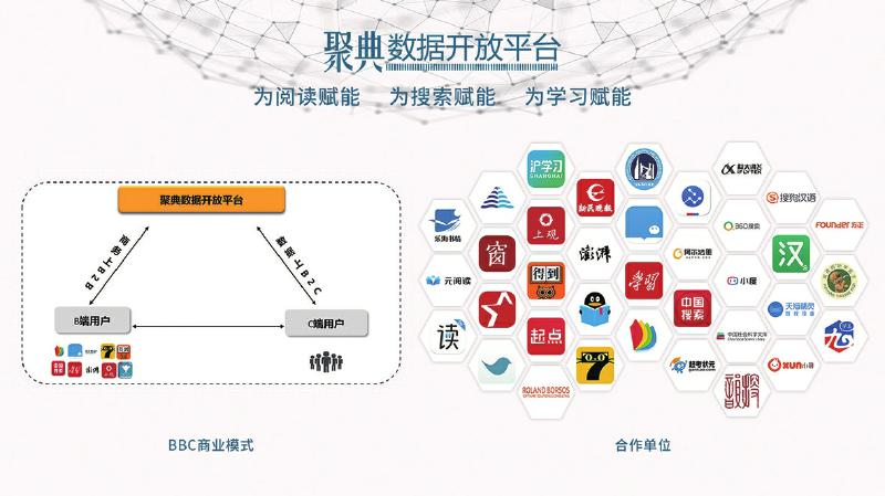以我為主,推動(dòng)產(chǎn)業(yè)鏈和生態(tài)圈的協(xié)同共進(jìn)。與以往數(shù)字出版平臺大都采用B2B、B2C等商業(yè)模式不同,聚典平臺采取的是BBC運(yùn)營模式,即在商務(wù)流上是B2B模式,而在數(shù)據(jù)流上是B2C模式。該模式很好地解決了用戶在數(shù)字閱讀過程中的痛點(diǎn),同時(shí)又很好地平衡了各方利益,C端用戶無需付費(fèi)便可享受聚典平臺的優(yōu)質(zhì)內(nèi)容資源服務(wù),B端客戶向平臺付費(fèi)以獲得增值服務(wù),在增加其產(chǎn)品用戶黏性的同時(shí),也減輕了自身的數(shù)據(jù)加工和技術(shù)開發(fā)工作。聚典平臺不僅在總體上創(chuàng)造出增量價(jià)值,更通過制度的設(shè)計(jì)很好地平衡了增量價(jià)值的合理分配,讓各方都分享到其中的一部分,從而調(diào)動(dòng)了各方的參與性和積極性。