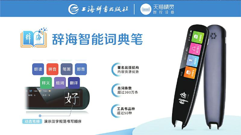 為了更好地適應(yīng)用戶在紙質(zhì)閱讀過程中的快速查檢需求,辭書社經(jīng)過數(shù)年設(shè)計(jì)研發(fā),于2022年9月推出辭海智能詞典筆。詞典筆充分依托聚典平臺積累的海量內(nèi)容資源,將1.6億字裝進(jìn)一支詞典筆,內(nèi)置詞條達(dá)到了300余萬條,收錄了《辭?!罚ǖ谄甙妫┖汀洞筠o?!贰稘h語大詞典》《英漢大詞典》《世紀(jì)漢英大詞典》等國家級標(biāo)志性工具書,整合《現(xiàn)代漢語大詞典》《現(xiàn)代漢語規(guī)范詞典》《中國成語大辭典》《同義詞、反義詞大詞典》等精品工具書,讓用戶每次都能夠查有所得。同時(shí),詞典筆實(shí)現(xiàn)掃讀結(jié)果1秒呈現(xiàn),并融合數(shù)字智能技術(shù),集掃描查詢、語音助手、聽力練習(xí)、語音翻譯、口語測評、數(shù)碼錄音、生詞本、文本摘抄等八大功能于一體,實(shí)現(xiàn)一筆多用。