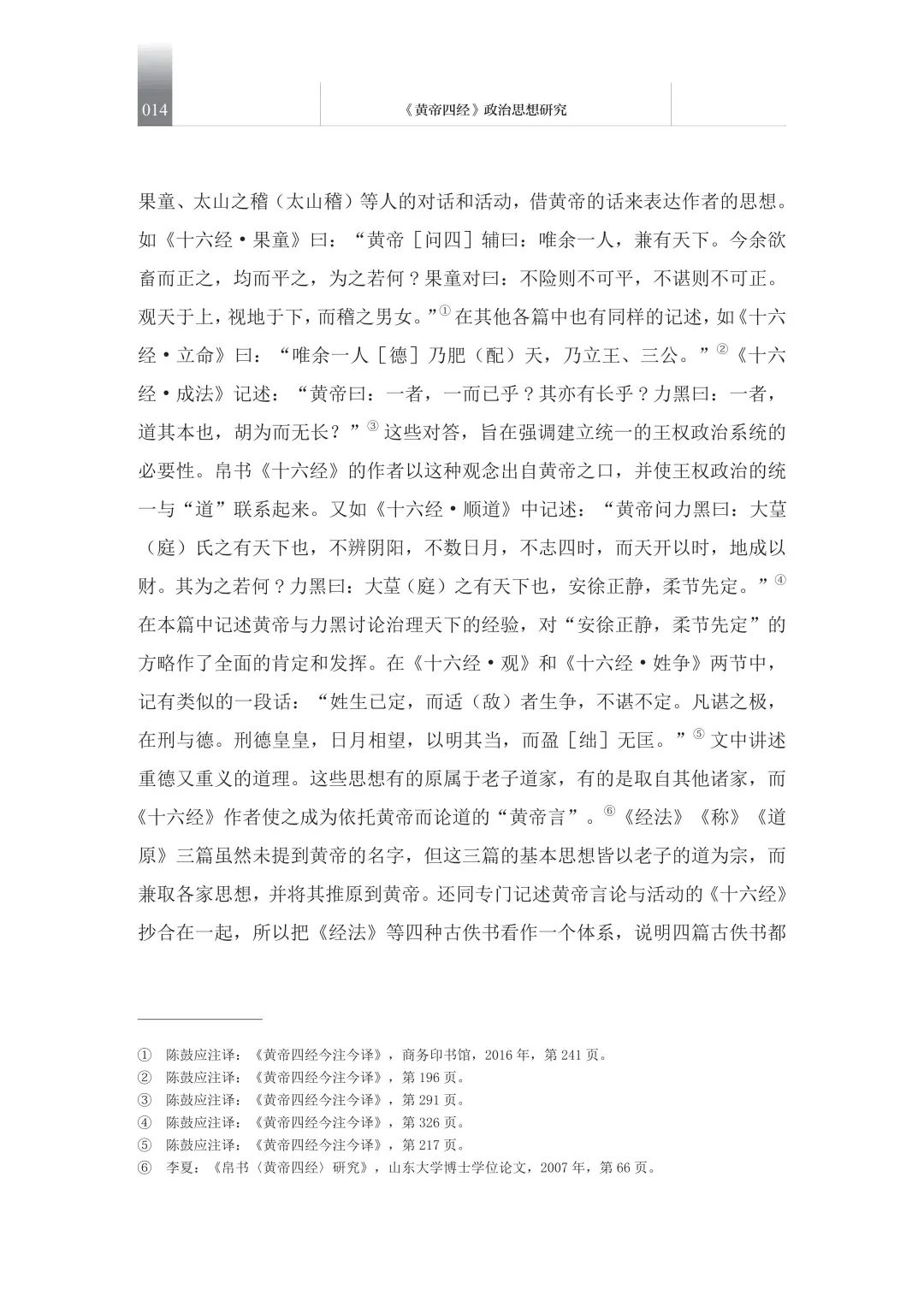 《黃帝四經(jīng)》作為東周之前各朝修身治國(guó)的指導(dǎo)性經(jīng)典,其修身治世功用迄今依然具有極高的現(xiàn)實(shí)意義和指導(dǎo)價(jià)值。本書(shū)以《黃帝四經(jīng)》為研究起點(diǎn),重點(diǎn)探索黃老政治思想中的重要概念,并試圖從核心詞匯“道”“德”概念的演變及其相互作用來(lái)探究黃老學(xué)說(shuō)的起源發(fā)展的學(xué)術(shù)邏輯,尤其從“德”含義的拓展與遷移去分析黃老哲學(xué)政治德性的建立,隨之引出黃老政治思想中的重要概念“道法”“刑名”“刑德”“因循”等,并希望由此描摹出黃老政治思想的特性。