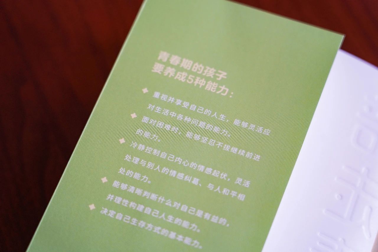 《陪孩子走過青春期》獨創(chuàng)性地提出“父母幸福是孩子幸福的基石”這一核心理念,認(rèn)為父母給孩子最好的禮物,就是讓自己成為自立且幸福的家長。倡導(dǎo)父母應(yīng)該先關(guān)照自我,提升內(nèi)在力量,才能構(gòu)建溫暖、相互理解、共同成長的親子關(guān)系,營造出滋養(yǎng)孩子也滋養(yǎng)父母的家庭氛圍。