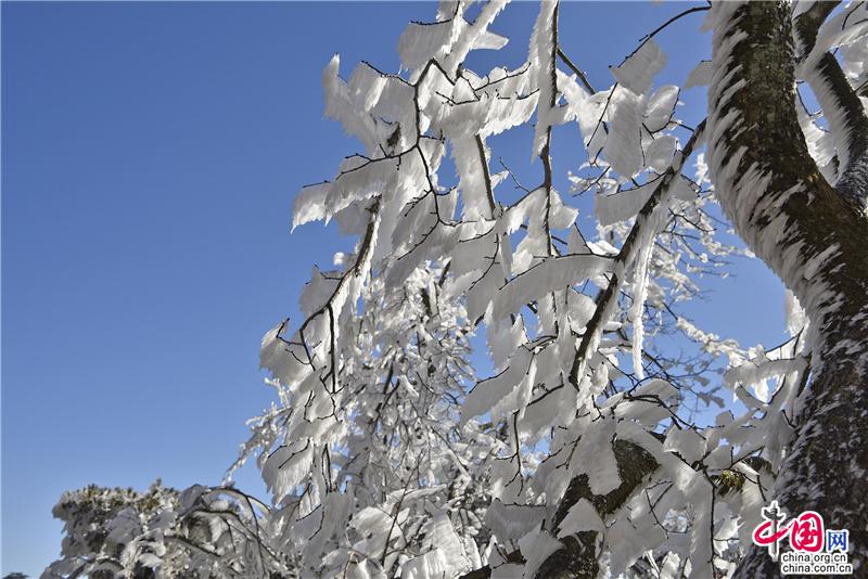 2019年最后一天黃山風(fēng)景區(qū),出現(xiàn)壯觀的日出、霧凇、云海景觀,到處銀妝素裹,冰雕玉砌,“一夜寒風(fēng)起,萬樹銀花開”,置身其間,仿佛進(jìn)入撲朔迷離的童話世界,給來山的游客帶來意外的驚喜。