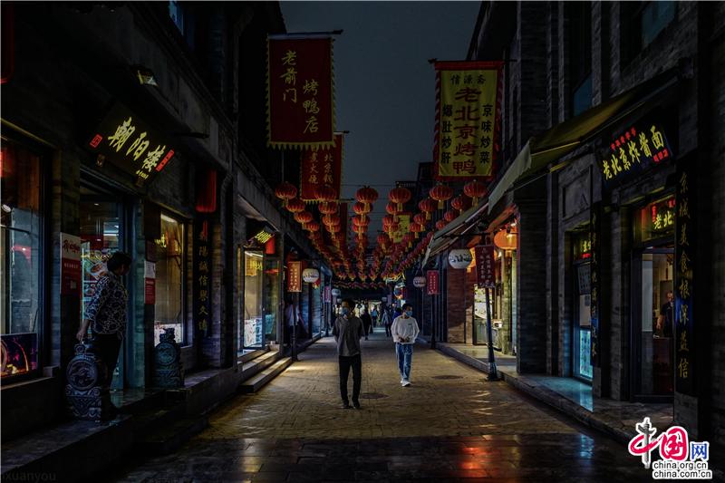 昨天(5月21日)下午三點半后,北京的天氣突然由白天變成了黑夜,當(dāng)時小編正在前門鮮魚口美食街拍攝,光線的明暗變化中,民國風(fēng)的灰墻青瓦的街道,忽然生出幾分魅惑而神秘的美感,紅燈籠在風(fēng)雨中搖曳、巨大的京劇招貼畫在墻上,胡同里人影憧憧……