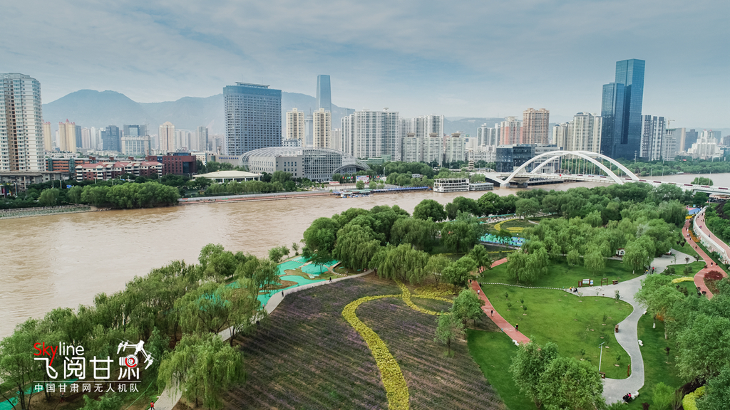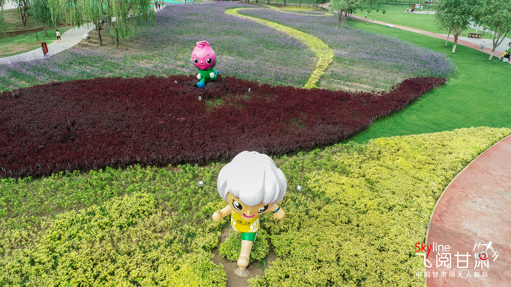 從空中俯瞰,蘭州馬拉松公園色帶豐富,綠意蔥榮。
