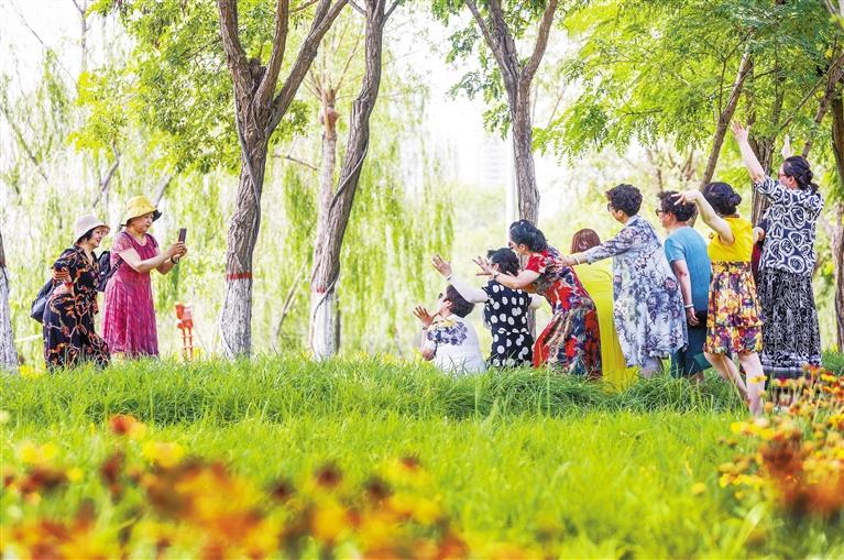 公園內(nèi)馬鞭草種植量達(dá)20多萬株,還有金雞菊、天人菊、松果菊、金娃娃萱草、月季等宿根花卉和醉蝶、波斯菊、百日草等,花卉種植面積7萬多平方米,占公園總面積的60%以上。絢麗多彩的大色塊的花景組合配以公園獨特的運動主題,呈現(xiàn)出動靜有致的濱河“花海”,深受廣大市民的喜愛,成為黃河風(fēng)情線新晉網(wǎng)紅“打卡”點。