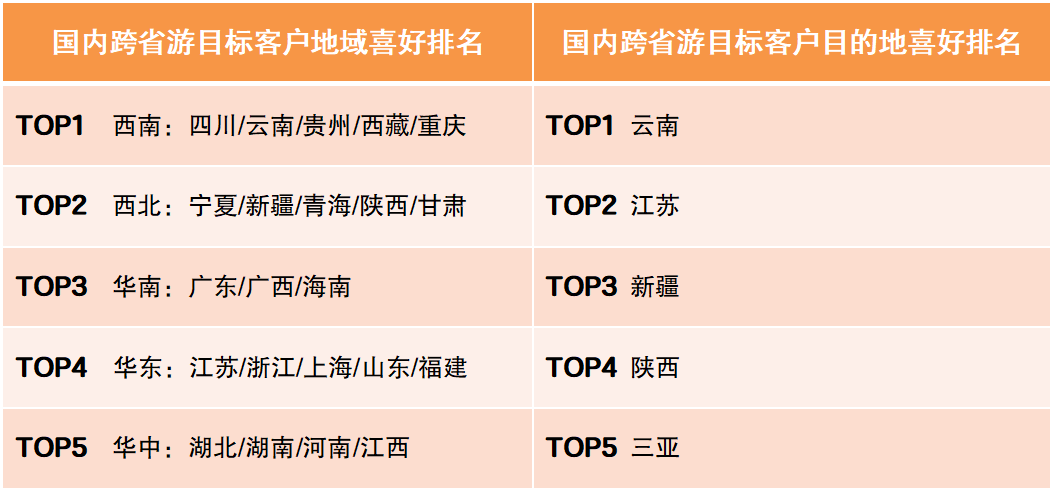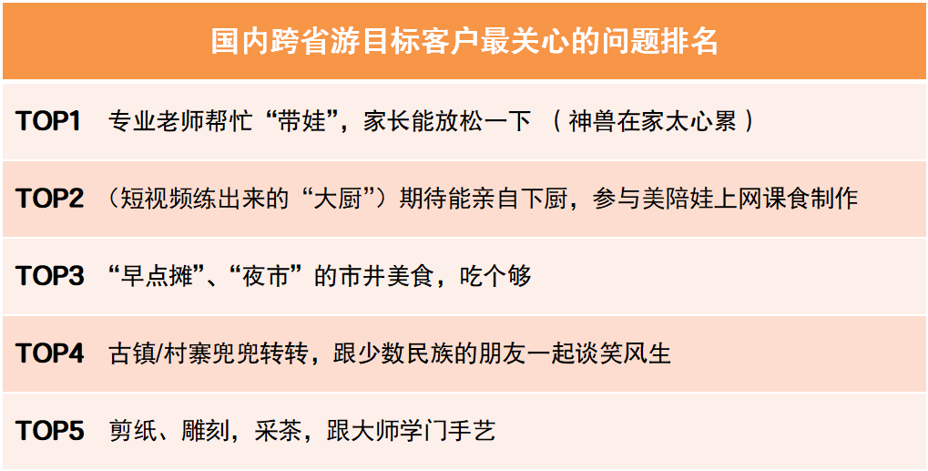 通過針對中青旅遨游網(wǎng)會員、中青旅聯(lián)盟成員單位的忠實客戶等群體的調(diào)研,以及近半年中青旅遨游網(wǎng)搜索、瀏覽的監(jiān)測數(shù)據(jù)進行綜合分析。結(jié)果顯示,西南和西北是客戶喜好程度最高的兩大地域;云南、江蘇、新疆、三亞、陜西是客戶喜好程度最高的五大熱門目的地??蛻糇铌P(guān)心的問題,帶娃、參與、美食、閑逛、學藝則位列前五名。