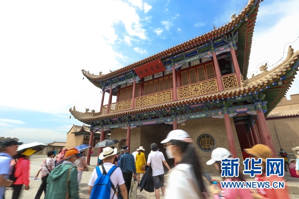 8月10日,游客在嘉峪關(guān)關(guān)城景區(qū)游玩。新華社記者 馬希平 攝