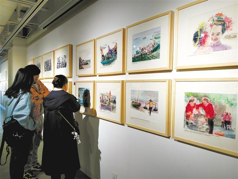 連環(huán)畫藝術家用手中的筆將紅旗渠自力更生、艱苦創(chuàng)業(yè)、無私奉獻的精神娓娓道來;一張畫紙,多圖呈現(xiàn)出我國鐵路日新月異的變化……在廣袤的祖國大地上,從來不缺多彩的中國故事。市民吳女士帶孩子前來觀展,在這些畫作前,她循著連環(huán)畫的注釋說明為孩子講述故事脈絡,她認為,“架上連環(huán)畫”有畫面,有故事,有文字,容易讓孩子理解作品內(nèi)容??梢哉f“架上連環(huán)畫”是對傳統(tǒng)連環(huán)畫在藝術語言和表現(xiàn)形式上的革新。