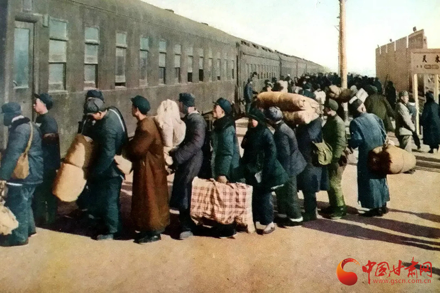 中國鐵路蘭州局集團(tuán)有限公司紅色教育基地陳列的推水車、鐵皮水壺和懸掛的老照片,透露出彼時春運(yùn)出行情況。