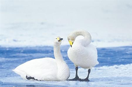 我國有三種天鵝,在甘肅都有分布,其中更常見的是大天鵝。大天鵝不在甘肅繁殖,而要飛往遙遠(yuǎn)的西伯利亞等地,但會(huì)途經(jīng)甘肅的諸多濕地,并于此歇腳補(bǔ)充能量。