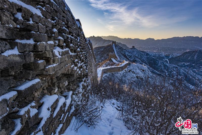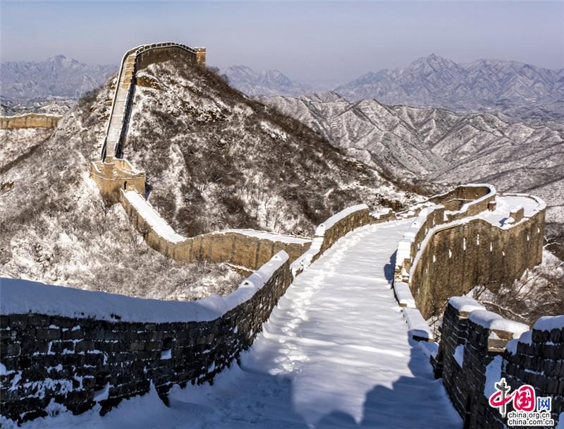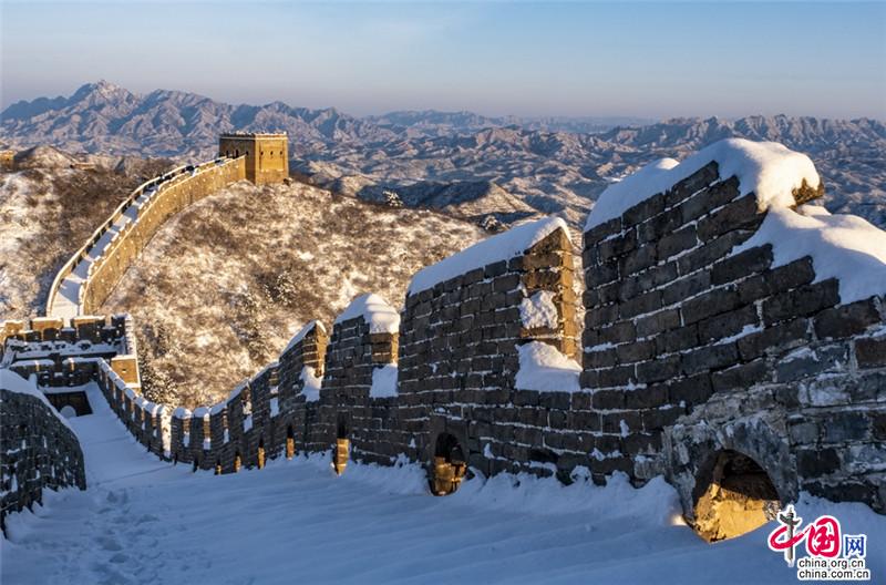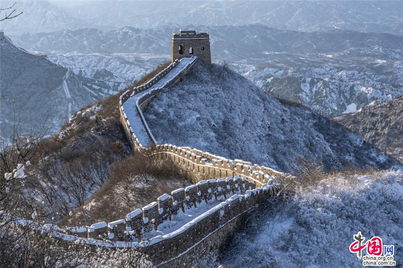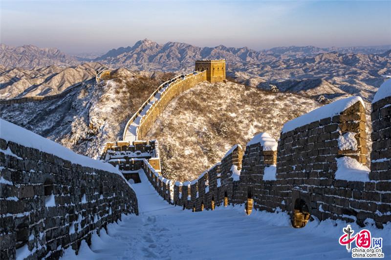 皚皚白雪覆蓋長(zhǎng)城內(nèi)外,銀裝素裹金山嶺氣勢(shì)磅礴。