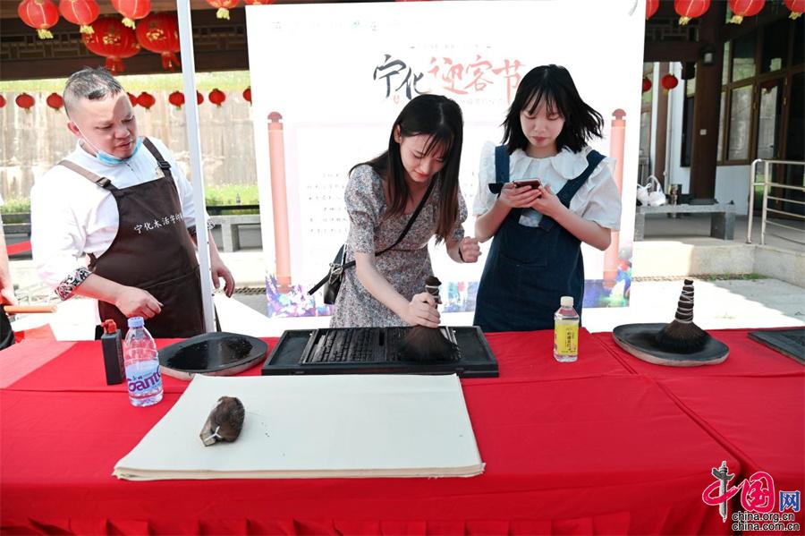 古色古香的蛟湖黃慎文化園,原為清代著名畫家,揚(yáng)州八怪之一的黃慎所建。他在這里讀書作畫,其詩集《蛟湖詩鈔》流傳至今?;顒?dòng)現(xiàn)場(chǎng),游客們一邊欣賞文化園的古色印記,一邊品鑒名人書畫展,遍覽寧化四色資源。(陳祥臨)