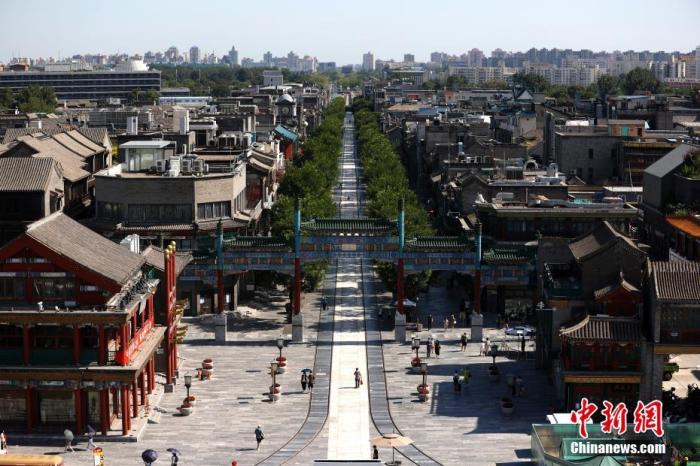 圖為在北京正陽(yáng)門箭樓拍攝的北京中軸線。中新社記者 富田 攝