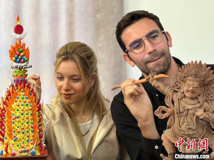 圖為高佑思和露露體驗(yàn)熱貢藝術(shù)。李江寧 攝