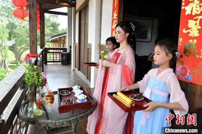 資料圖:圖為身著漢服的姑娘們展現(xiàn)了屬于七夕最傳統(tǒng)的節(jié)日文化內(nèi)容——祭星乞巧。中新社記者 劉可耕 攝