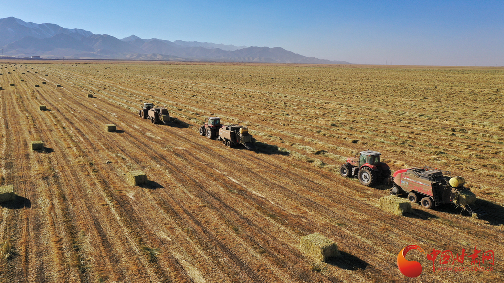 11月9日,甘肅山丹馬場正在對(duì)此前收割晾曬的21萬畝燕麥草打包運(yùn)輸,一輛輛大型農(nóng)用機(jī)械穿梭田間忙碌作業(yè)。