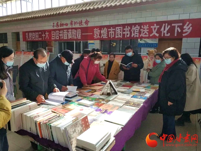 中國(guó)甘肅網(wǎng)11月15日訊 (本網(wǎng)記者 張?zhí)m琴)為了深入學(xué)習(xí)宣傳貫徹黨的二十大精神,近日敦煌市圖書館組織開展“禮贊黨的二十大,自信書香滿敦煌”送文化下鄉(xiāng)活動(dòng)受到當(dāng)?shù)厝罕姎g迎。據(jù)了解,活動(dòng)將在敦煌市各鄉(xiāng)鎮(zhèn)持續(xù)進(jìn)行,通過黨的二十大主題圖片展和敦煌精品圖書展相結(jié)合,利用文化惠民下基層的方式,向基層群眾宣傳黨的二十大精神,豐富人們的精神文化生活。