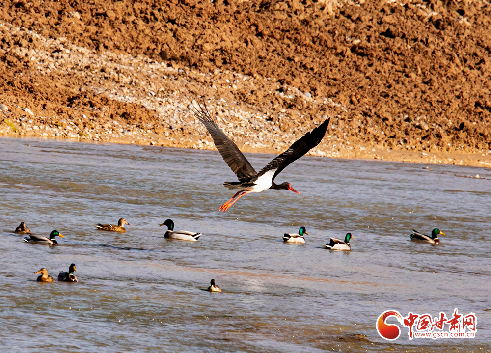 近日,大批被比喻為鳥中“大熊貓”的黑鸛在平?jīng)鍪谐缧趴h汭河棲息,它們身軀挺拔,纖頸長腿,姿態(tài)優(yōu)美,或悠閑覓食,或展翅翱翔。