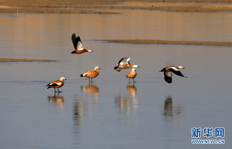 初冬時節(jié),位于鳴沙山下的甘肅省敦煌市黨河濕地,白鷺、綠頭鴨、赤麻鴨、灰雁等候鳥在這里棲息、飛翔、覓食,構成了一幅和諧美麗的生態(tài)畫卷。