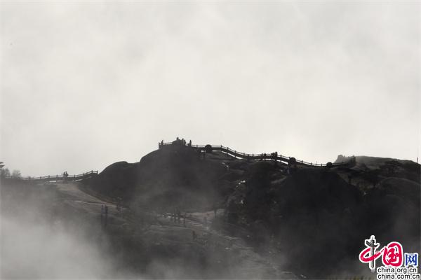 當(dāng)人們站在高山之巔俯首云海,如臨大海,波起峰涌,浪花飛濺,驚濤拍岸,神奇的佛光一波接著一波,美如仙境。(姚育青