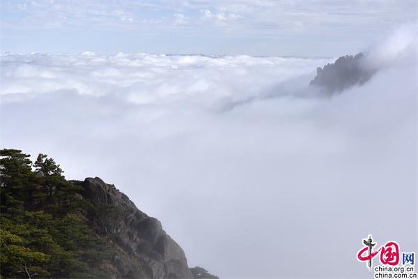 11月23日下午,安徽黃山風(fēng)景區(qū)雨后放晴,山巒之中,云海彌漫,縹緲無(wú)形,奇松、怪石和群峰在的云海間時(shí)隱時(shí)現(xiàn),亦夢(mèng)亦幻。