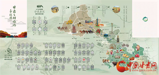 據(jù)了解,為了深入推進文旅市場復蘇百日攻堅行動,加強產(chǎn)品開發(fā)供給,促進鄉(xiāng)村旅游升溫,省文旅廳于12月13日發(fā)布了2022版甘肅鄉(xiāng)村旅游手繪圖。手繪圖以“相約隴原促振興·富了口袋富腦袋”為主題,對2022年創(chuàng)建的6個鄉(xiāng)村旅游示范縣,60個文旅振興鄉(xiāng)村樣板村開發(fā)設計了電子“二維碼”,設置了甘肅省鄉(xiāng)村旅游60條四季精品線路,幫助游客品味鄉(xiāng)村風情、感知鄉(xiāng)村文化、體驗鄉(xiāng)村魅力,進一步展示甘肅鄉(xiāng)村旅游新形象、擴大鄉(xiāng)村旅游影響力,做亮“隴上鄉(xiāng)遇”鄉(xiāng)村旅游品牌,打造“隴上鄉(xiāng)遇”鄉(xiāng)村旅游全景圖。