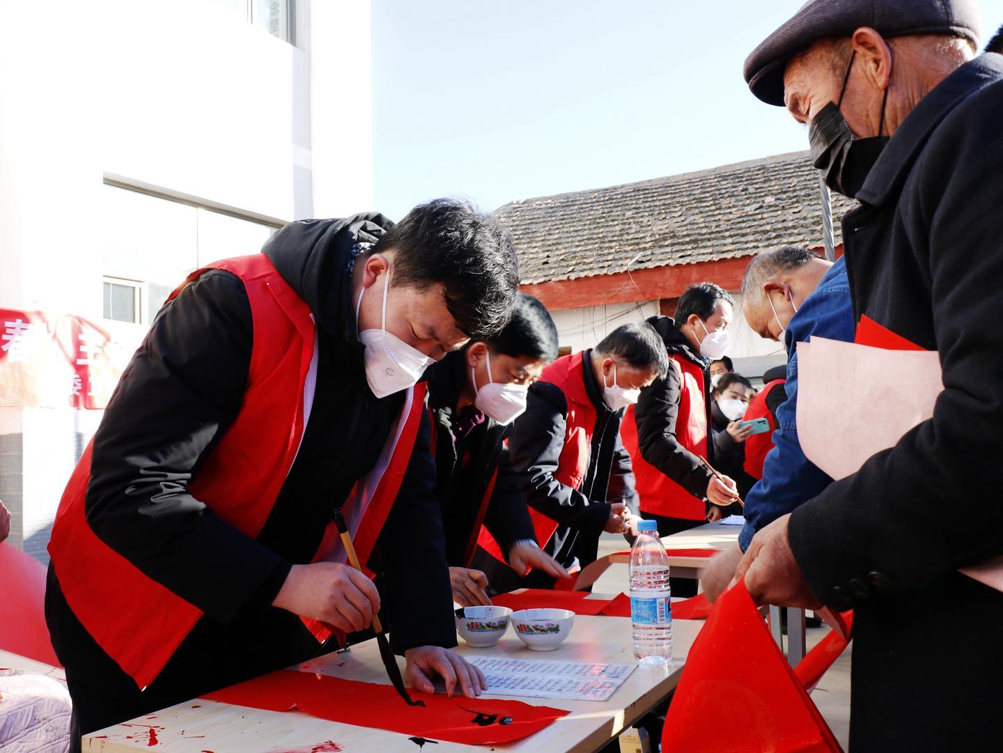 活動(dòng)現(xiàn)場(chǎng),來(lái)自涼州區(qū)書法家協(xié)會(huì)、涼州區(qū)書畫院的文化志愿者們揮毫潑墨,筆尖游走于墨色與紅紙之間,以筆寄意、以字傳情,片刻間,一張張象征平安吉祥的"福"字、一副副謳歌黨的二十大、內(nèi)容文明健康的紅色喜慶春聯(lián),寄托著滿滿的新春祝福撲面而來(lái)?,F(xiàn)場(chǎng)群眾拿到自己心儀的春聯(lián)和"福"字,喜悅之情溢于言表?;顒?dòng)中,涼州區(qū)婦女聯(lián)合會(huì)、共青團(tuán)涼州區(qū)委等單位還開(kāi)展了愛(ài)心捐贈(zèng)、公益診療、義務(wù)理發(fā)等志愿服務(wù)活動(dòng),為困難群體送上溫暖和健康。