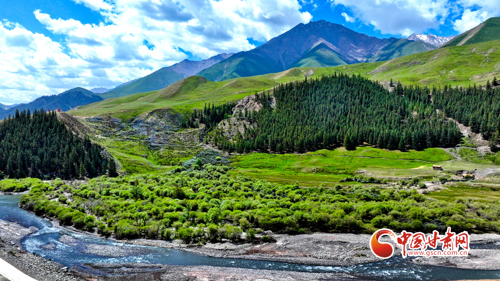 6月29日,在祁連山國家公園甘肅省張掖市肅南裕固族自治縣大河鄉(xiāng)段,藍天白云下,巍峨壯麗的祁連山蒼松翠柏,水光粼粼,構(gòu)成一幅美麗的畫卷。