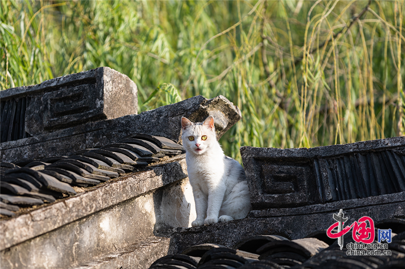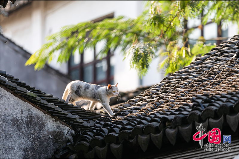 在毛孩子眼里,這就是包容一切活動的「游樂場」,片片青瓦上留下梅花印?;蛟S你也該往古鎮(zhèn)的屋頂上瞧,檐角翹伸、清風古韻,讓人心曠神迷?;蛲侵回堃粯优噬细咛帲拼翱茨撬菢?,那木門青瓦,就是江南水鄉(xiāng)的具象。