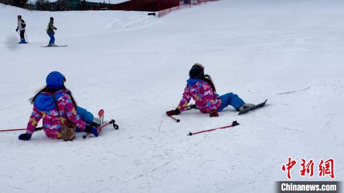 圖為滑雪教練對臺胞青年進行首次滑雪前的培訓(xùn)。王牧雨 攝