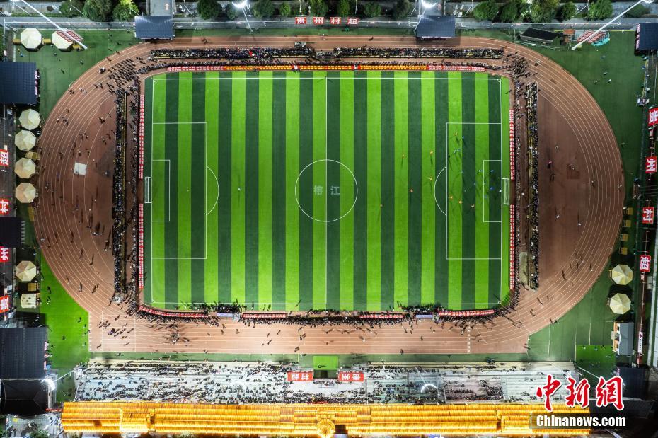 圖為1月18日晚,航拍2024年貴州“村超”預選賽現場。(資料圖)唐哲 攝