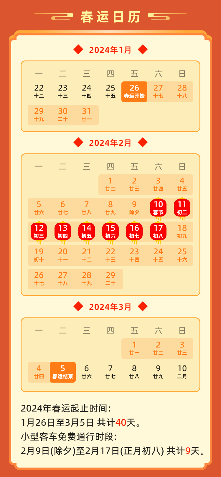 1.春運期間,部分路段將出現(xiàn)客流高峰,出行前請及時關(guān)注沿線實時路況、氣象預(yù)警等重要信息,合理規(guī)劃出行路線和時間,避開高峰時段和擁堵路段,錯峰出行。