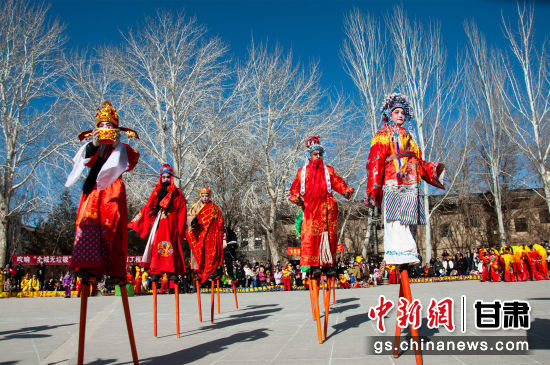 2024年春節(jié)假期,敦煌市組織城鄉(xiāng)9支社火隊(duì)在城區(qū)開展社火展演活動(dòng),讓游客近距離體驗(yàn)和感受敦煌民俗文化的獨(dú)特魅力,營(yíng)造紅紅火火、熱鬧喜慶的節(jié)日氛圍。王斌銀 攝