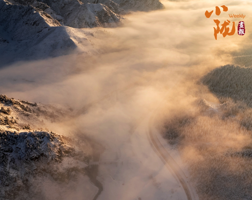 浩瀚的云海在山谷間涌動,時隱時現(xiàn)的山峰,晶瑩剔透的雪掛,透如薄紗的霧氣,隨風(fēng)紛飛的雪花,勾勒出天祝高原獨有的春景,美得令人心醉。