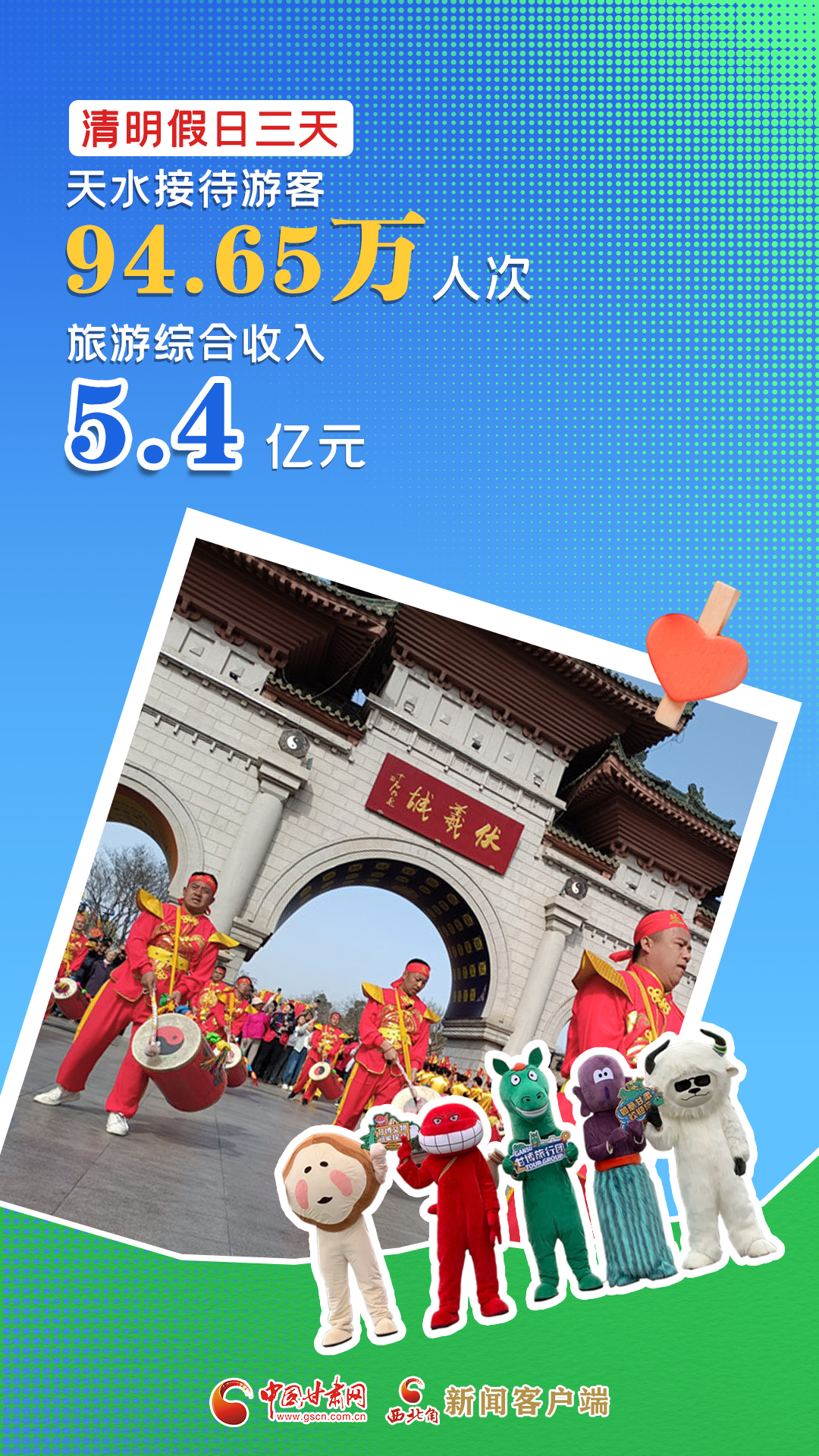 海報|清明假日三天,天水市實現(xiàn)旅游綜合收入5.4億元