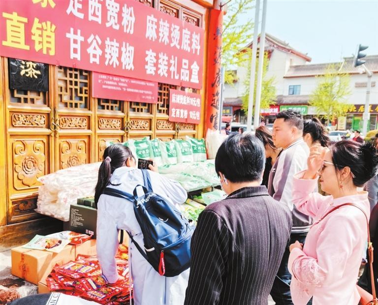 游客在代銷點(diǎn)購買麻辣燙底料和粉條。新甘肅·甘肅日報(bào)記者 顧麗娟