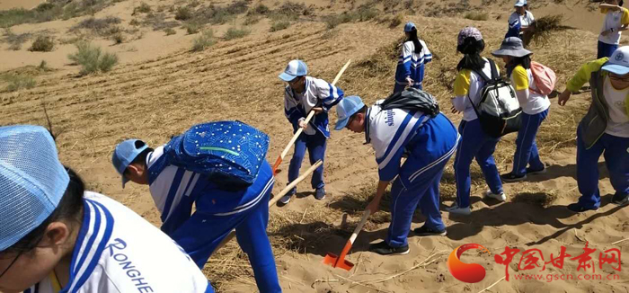 學(xué)生們體驗治沙人的辛苦