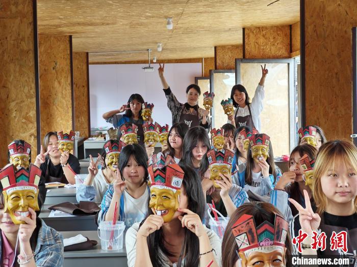6月4日,德江當(dāng)?shù)貙W(xué)生在博物館體驗畫儺面具。(受訪者供圖)