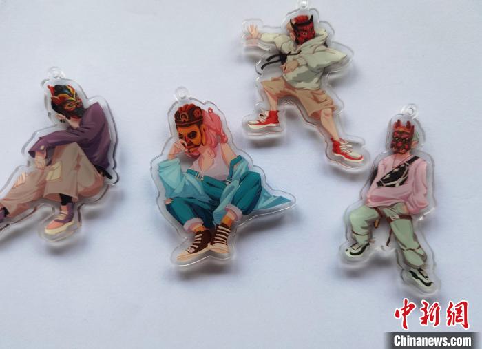 冉勇帶著團隊依照儺戲面具開發(fā)的冰箱貼。周燕玲 攝