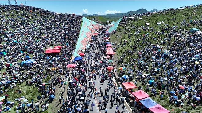 盛夏的甘南到了如詩如歌的最美季節(jié),艷陽高照下的合作當(dāng)周草原天藍(lán)草碧格桑花開,數(shù)百頂潔白的帳篷和盛裝出行的甘南各族群眾將這里裝扮成色彩斑斕的最美畫卷。