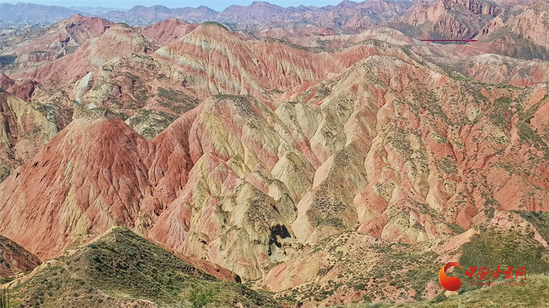 時(shí)值盛夏,水墨丹霞山體頂部草木淡雅點(diǎn)綴更有名畫意境,水墨丹青版的蘭州丹霞值得游客期待。