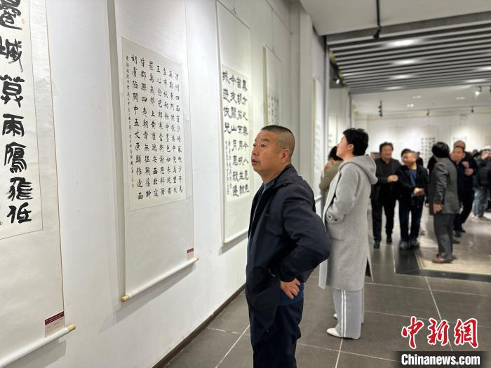圖為展覽吸引書(shū)法愛(ài)好者觀賞。楊娜 攝