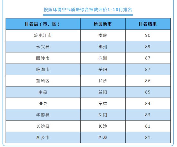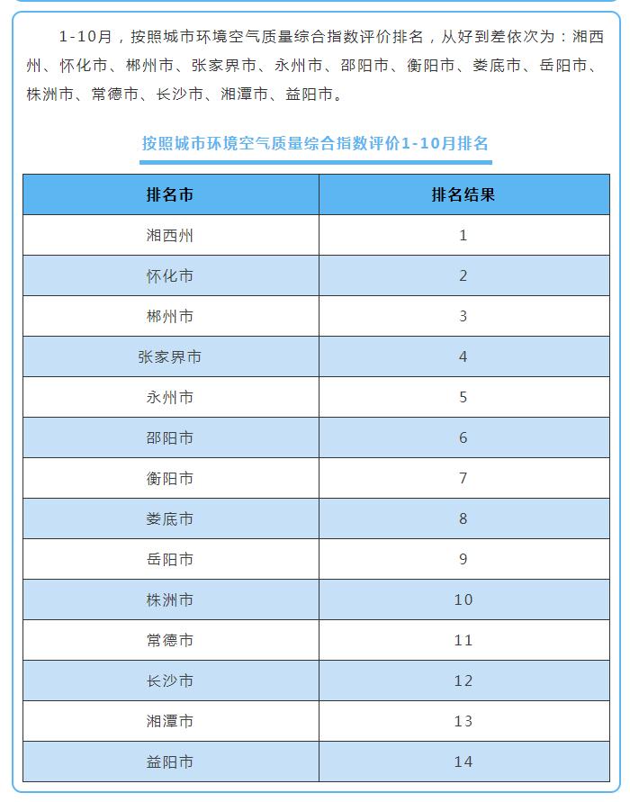 原標題:10月湖南環(huán)境空氣質(zhì)量:湘西張家界位居前茅