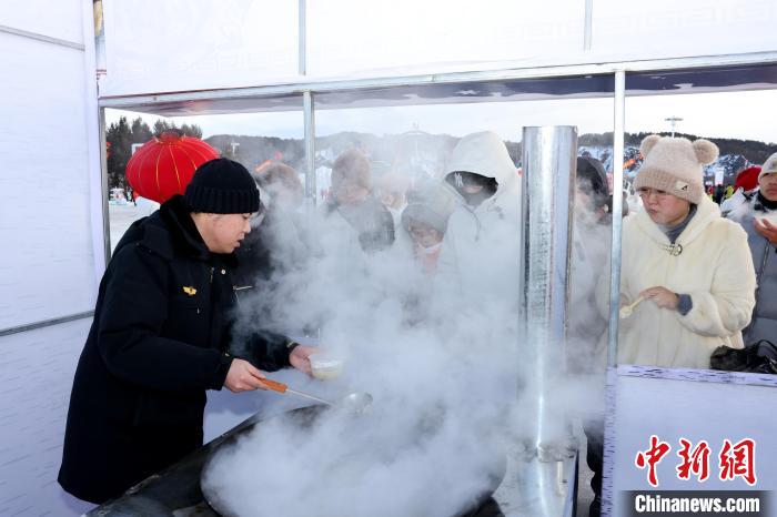 除了豐富的冰雪游樂項目,北極村七星廣場還設(shè)有非遺民俗文化展區(qū)和東北特色美食區(qū),讓游客們在參與冰雪活動的同時,還能欣賞樺樹皮畫、手工編織等具有地方特色的非物質(zhì)文化作品,品嘗江水燉江魚、鐵鍋燉大鵝等東北特色美食。
