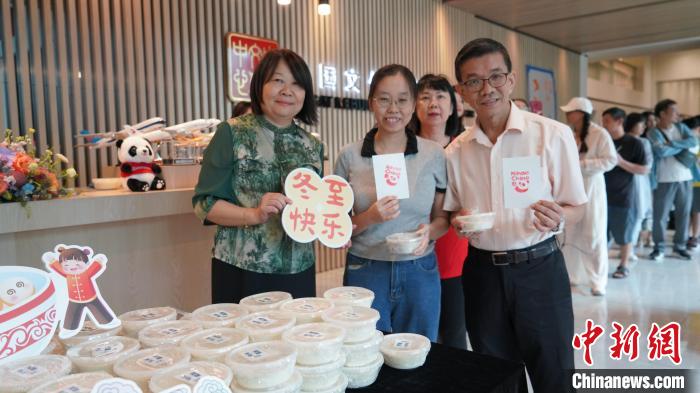 吉隆坡中國(guó)文化中心主任韓寧(左一)為民眾派發(fā)冬至湯圓。吉隆坡中國(guó)文化中心 供圖