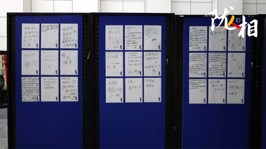 整體被搭建成“S”形的展區(qū),借鑒了博物館的陳展布局,讓參觀者不必走回頭路;展區(qū)第二部分陳列著各種文創(chuàng)玩偶的展臺赫然入目,讓人驚喜連連;展區(qū)外圍的留言墻,不僅有備好的A4紙,還貼心地粘上了馬克筆,方便觀眾留言……來參觀的人,即便對藝術(shù)不敏感也能被設(shè)計者的細(xì)心和創(chuàng)意輕松打動。