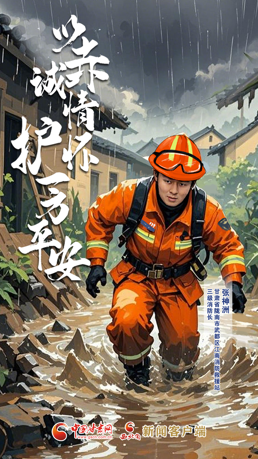 手繪海報(bào)|甘肅省隴南市武都區(qū)江南消防救援站三級(jí)消防長(zhǎng)張神洲:以赤誠(chéng)情懷 護(hù)一方平安